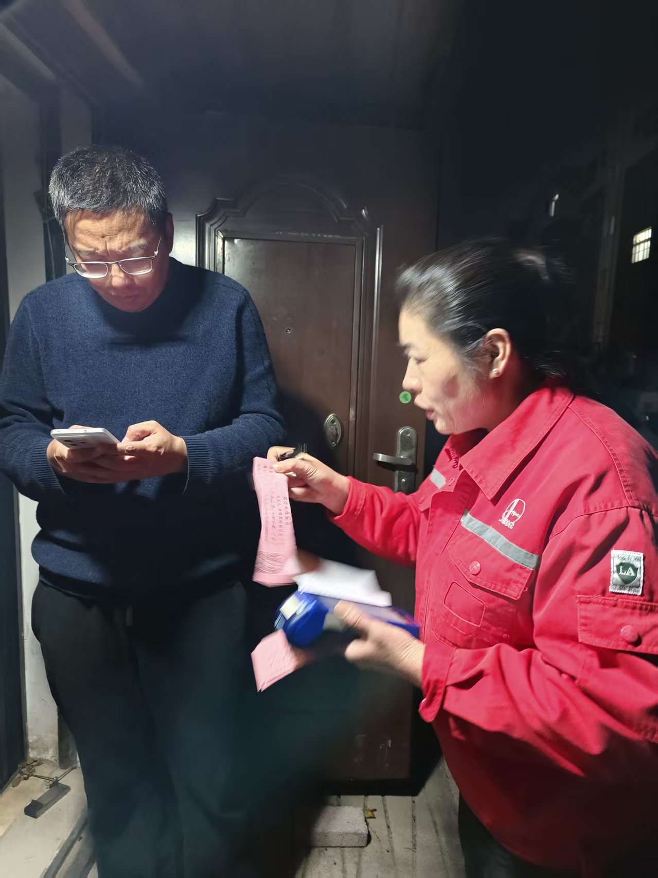 进入收费阶段,针对部分居民因工作、外出等原因不在家的情况,员工们早已备好提前印制的温馨提示条,印有二维码与再次上门的时间建议,贴在楼道口及居民家门口。这张小小的提示条,既避免了重复上门的打扰,更让居民感受到了胜兴事业部的贴心与尊重。