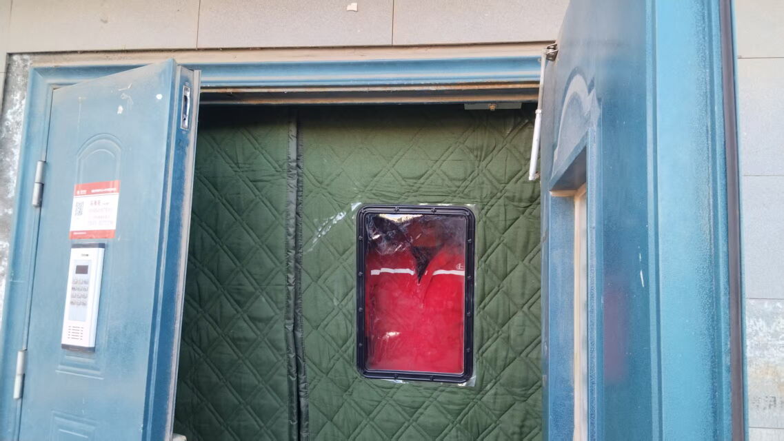 这些门帘看着不起眼,实际上能起到很大作用。既避免楼道温度过低消防管线冻裂,又为楼道内居民阻挡风雪严寒。