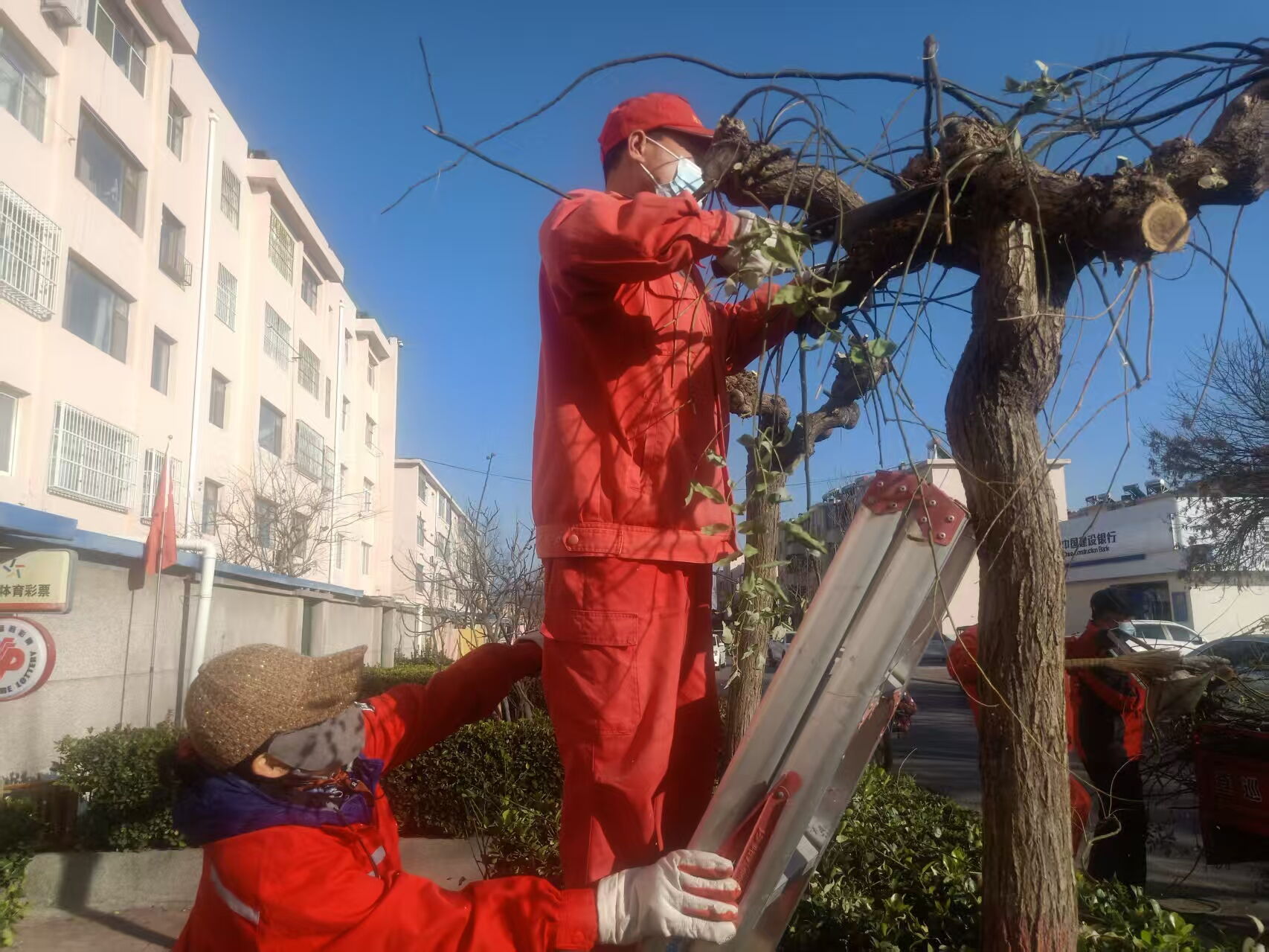 龙爪槐修剪工作是树木整形修剪里的一项重点工作。冬季,龙爪槐叶子已全部掉落,交错的枝条可以看得比较清楚,滨州分公司建翔项目抓住此有利时机,对建翔和兴滨2个小区100余棵龙爪槐进行精心修剪。