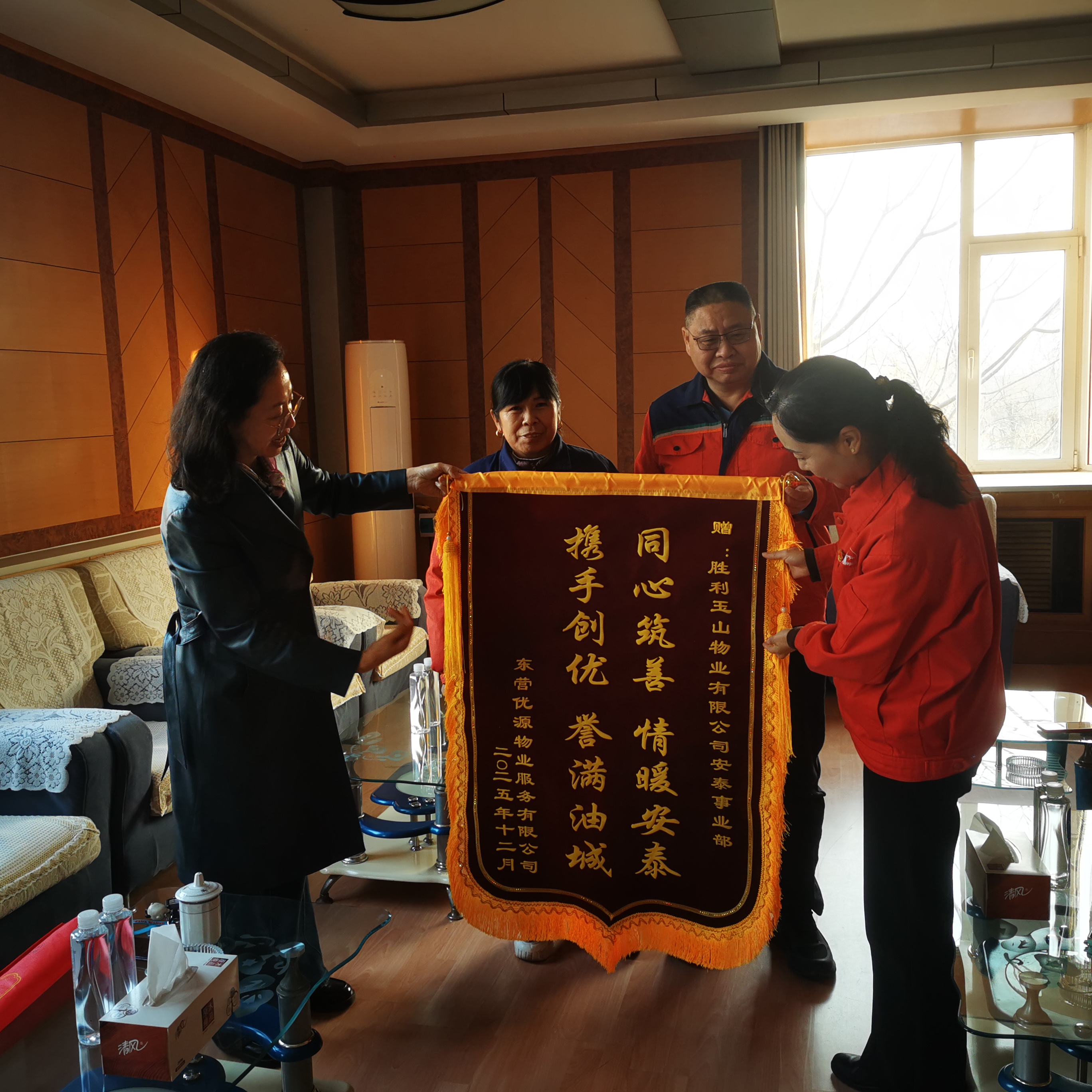 近日,一面写有“同心筑善情暖安泰 携手创优誉满油城”的鲜红锦旗,被承揽安泰小区项目负责人郑重地交到胜利玉山物业景苑事业部经理王翠芳的手中。这面锦旗,不仅承载着诚挚的谢意,更见证了景苑事业部安泰项目管理团队在过去一年工作中,对承揽队伍日常保洁工作进行系统性、精细化指导所取得的显著成果。