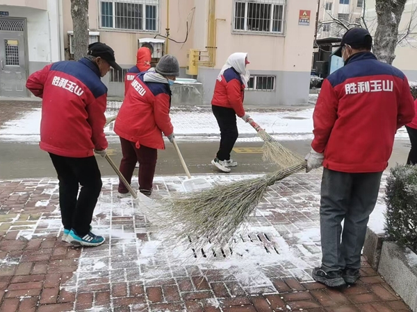 天还未亮,雪还在下,胜利玉山物业桐凤事业部全体干部员工立即启动扫雪应急预案,紧张而有序地开始清扫积雪。时间尚早,路面积雪还未被行人、车辆踩踏压实,大家抓住这有利时机,用大扫帚清扫、用除雪铲清理,效果事半功倍。赶在小区业主出门上班前,桐凤事业部所服务的三个小区的大门口、主干道等主要道路上的积雪已全部清理完毕;趁着气温未降、干劲正足,大家一鼓作气,继续清理房前屋后的积雪,只为保障小区业主出行安全。各物业负责人对小区进行全面巡查,及时查找并消除安全隐患。他们还在小区收费室、公厕门口铺上防滑垫,张贴温馨提示,提醒业主注意防滑。