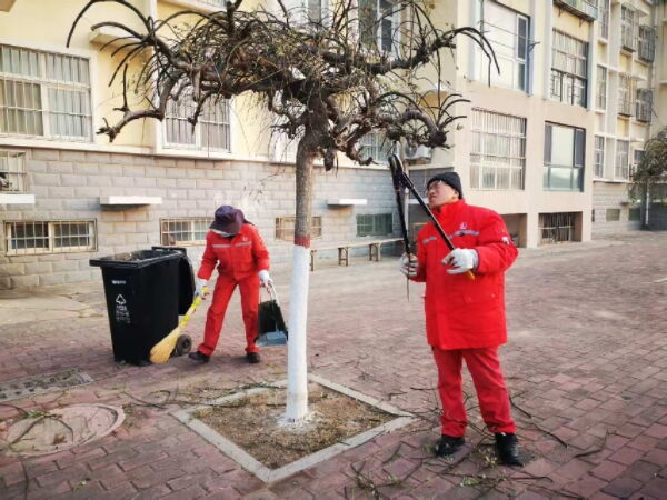 为保障小区内龙爪槐安全过冬,同时优化树木长势与小区景观效果,锦华事业部组织工作人员开展龙爪槐冬季专项修剪工作。