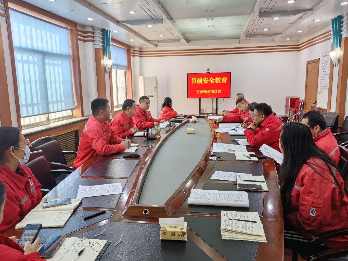2025年12月30号上午,为切实做好元旦期间的安全生产工作,有效防范各类安全事故的发生,确保节日期间各项工作的平稳有序,玉山事业部组织开展了节前安全教育培训会,培训围绕“防风险、除隐患、保安全”主题展开,结合冬季寒冷天气物业工作的特点以及节假日安全管理重点,系统讲解了冬季“六防”,用电安全,消防管理,交通安全和应急值守制度以及突发事件处置流程等内容,同时,针对近期国内发生的典型事故案例进行了深入剖析,以案示警,进一步增强了员工的安全意识和责任意识。