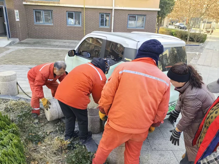 12月30日清晨,天色昏暗,锦苑三区156号楼业主驾车出行时,因视线不清不慎蹭到路口石墩,车辆无法行驶,业主急忙求助物业。锦泰项目工作人员接报后迅速赶赴现场,当即合力挪开石墩,小心将业主车辆移出,及时帮业主解决了困境。业主对物业快速响应、热心相助,连忙致谢。此次问题的解决尽显物业为民服务的初心,也让小区服务更有温度。