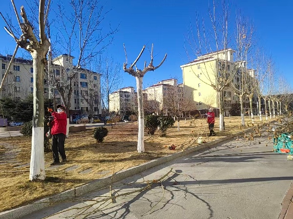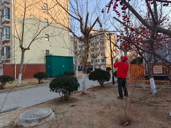幸福事业部在所辖各小区冬季绿化树木修剪养护工作正在有序进行,旨在进一步提升小区景观品质,消除安全隐患,助力树木健康生长。