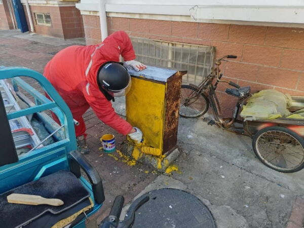 本次整治聚焦小区公共区域锈蚀配电箱,物业维修人员先对所有配电箱逐一排查登记,明确锈蚀程度与整改范围。施工中严格遵循电气安全规范,工作人员先断电操作,用专业工具细致打磨箱体锈蚀部位,彻底清除锈迹后,均匀粉刷黄色醒目油漆,既提升配电箱防腐防潮性能,醒目颜色也能快速提醒居民注意周边电气设施。