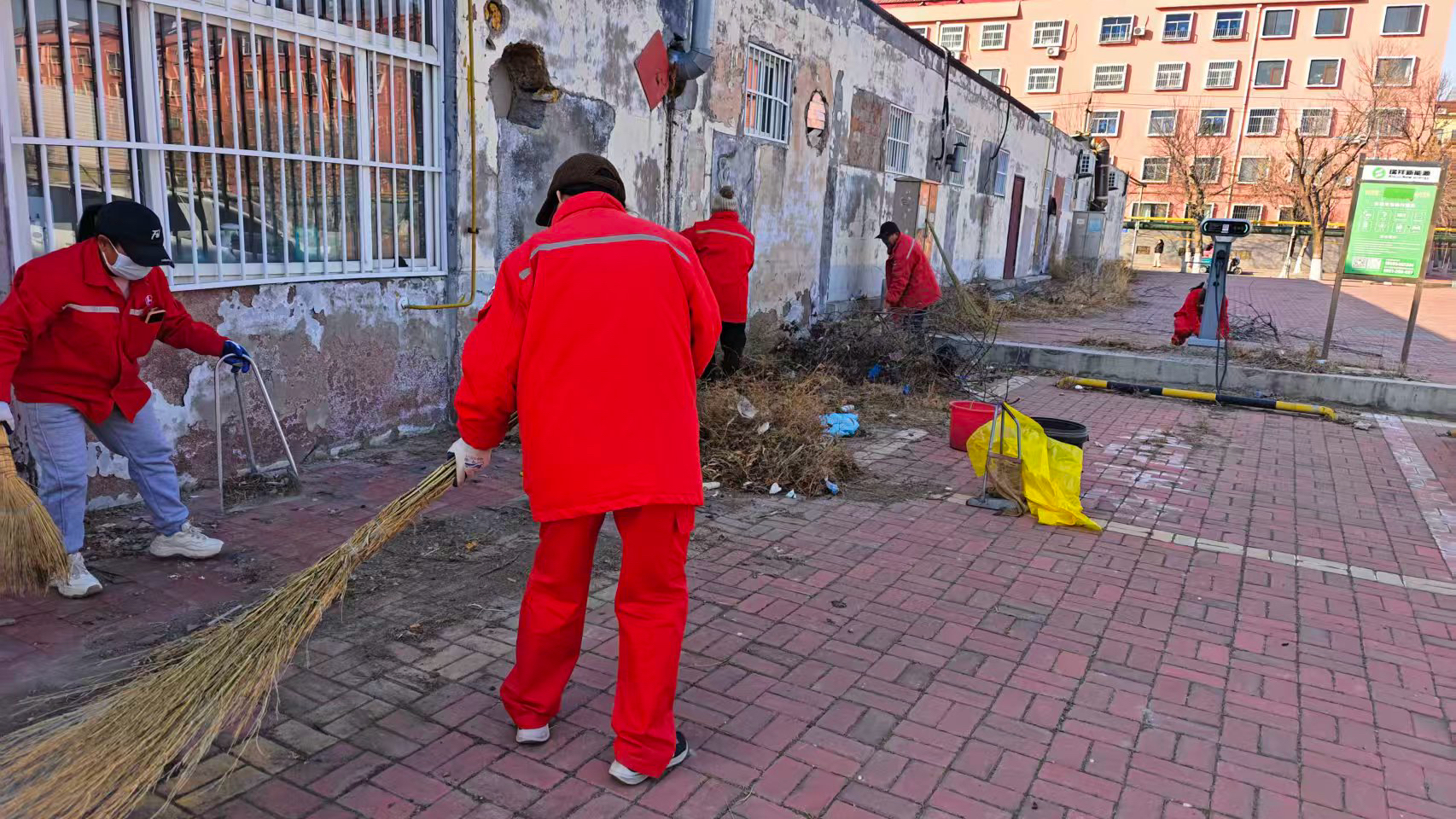 清理现场,最棘手的莫过于墙根下的卫生死角。员工们手持扫帚、铁锹等工具,干劲十足地投入到小区环境清洁工作中。他们弯腰蹲身,将缠绕在一起的干树枝逐一拆解,再用扫帚把碎叶、尘土扫成堆,集中装入清运车。他们手持细长的夹子,俯身贴近地面,仔细排查每一处砖缝、每一片草丛,将藏在里面的烟头、塑料袋、纸屑等细小垃圾一一捡拾干净,真正做到“不留一处卫生盲区,不存一丝清洁死角”。