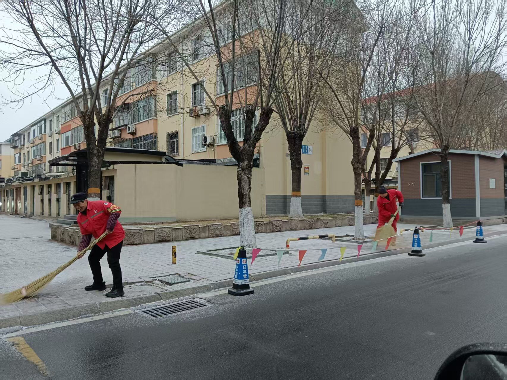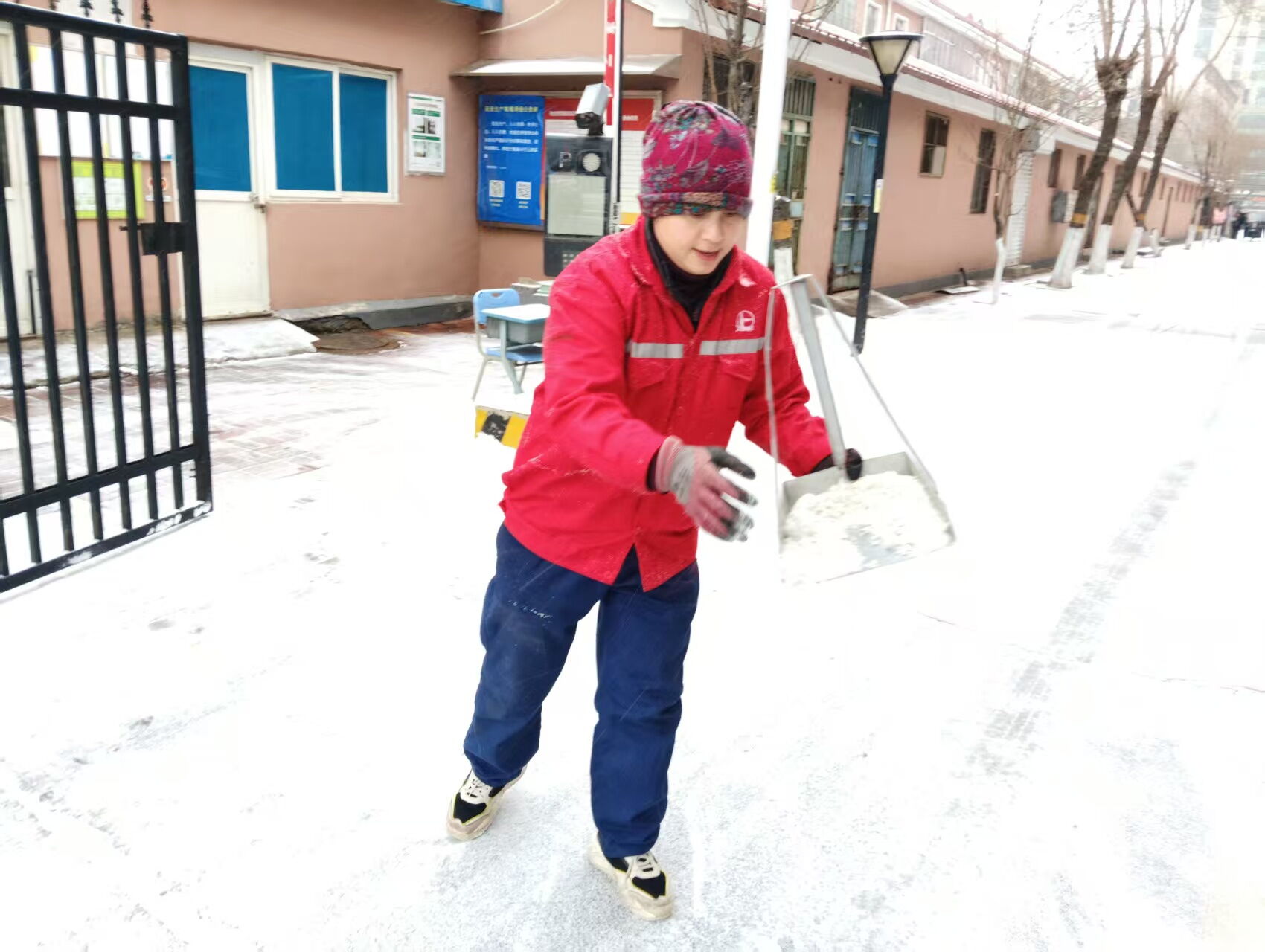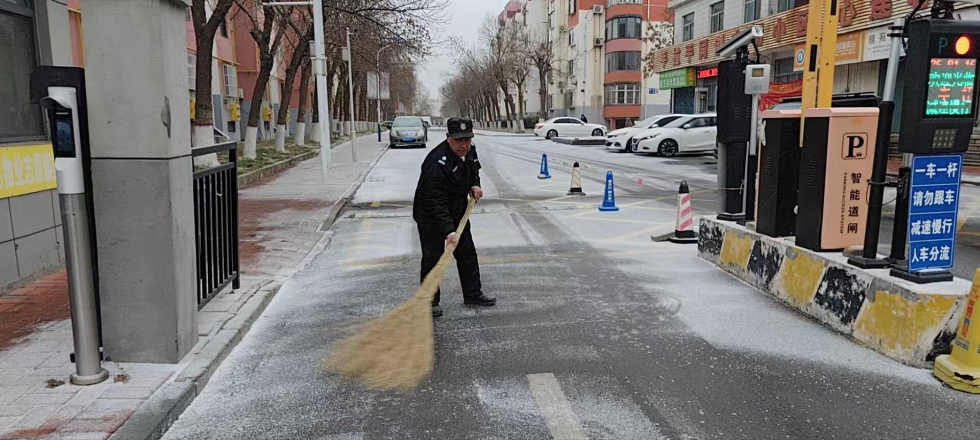 他们手持铁锹,扫帚,精准分工,有的负责清理主干道,有的清扫小区单元门前的积雪,确保居民出行安全,针对路面结冰的情况,玉山事业部员工及时撒除雪剂,萃苑项目还自制吹雪机进行除雪,防止车辆打滑,在坡道和易滑区域设立警示标志,保洁人员不间断巡查,随时处理新增的积雪和冰层,同时,各项目负责人通过微信群等平台,向居民发送安全提示,提醒大家注意防滑保暖,在细微处更显担当。
