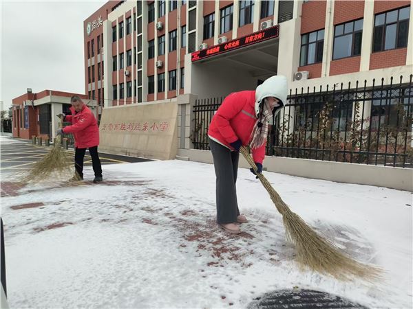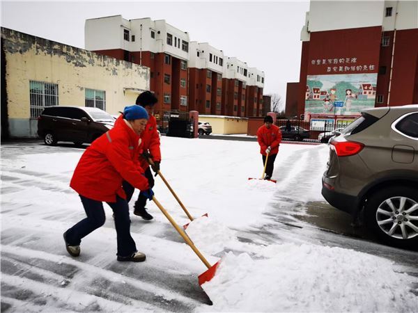 在“以雪为令,立降立清”的原则指引下,团队分工明确、配合默契:有的手持工具清扫路面,不放过任何一处易滑路段;有的在关键区域撒粗盐粒,从源头防范路面结冰。凛冽寒风中,大家不畏严寒、干劲十足,铲雪、推雪、清扫的身影穿梭在皑皑白雪间。居民志愿者的主动加入,更让这场除雪行动成为邻里同心的温暖实践,忙碌的身影交织成冬日里最动人的风景线。