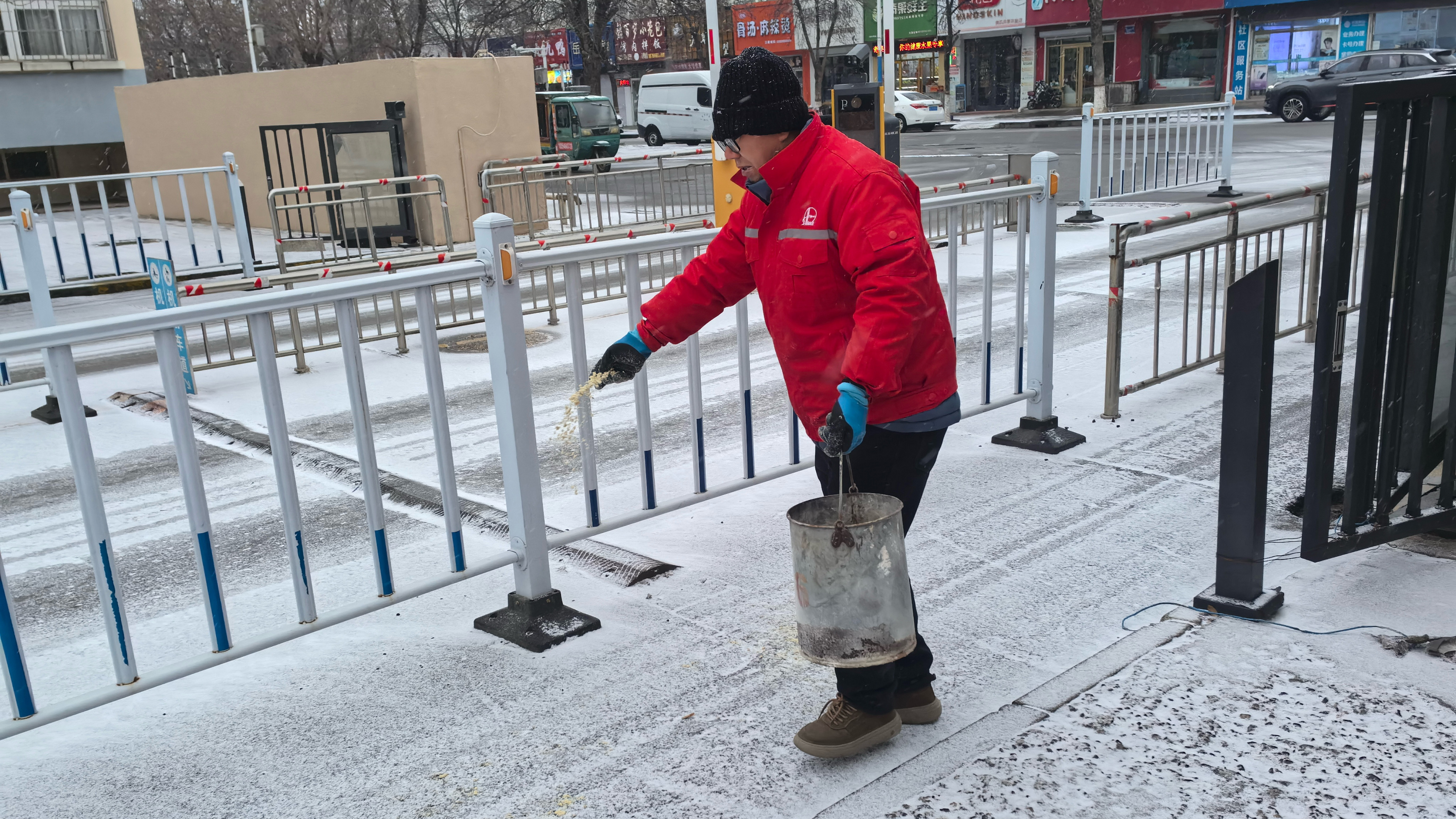 清雪不仅是力气活,更是良心活。在完成主干道的除冰作业后,员工们又马不停蹄地转战各个小区出入口、单元门台阶和便民通道。他们深知,这些看似不起眼的角落,恰恰是老人、孩子出行的高频区域。