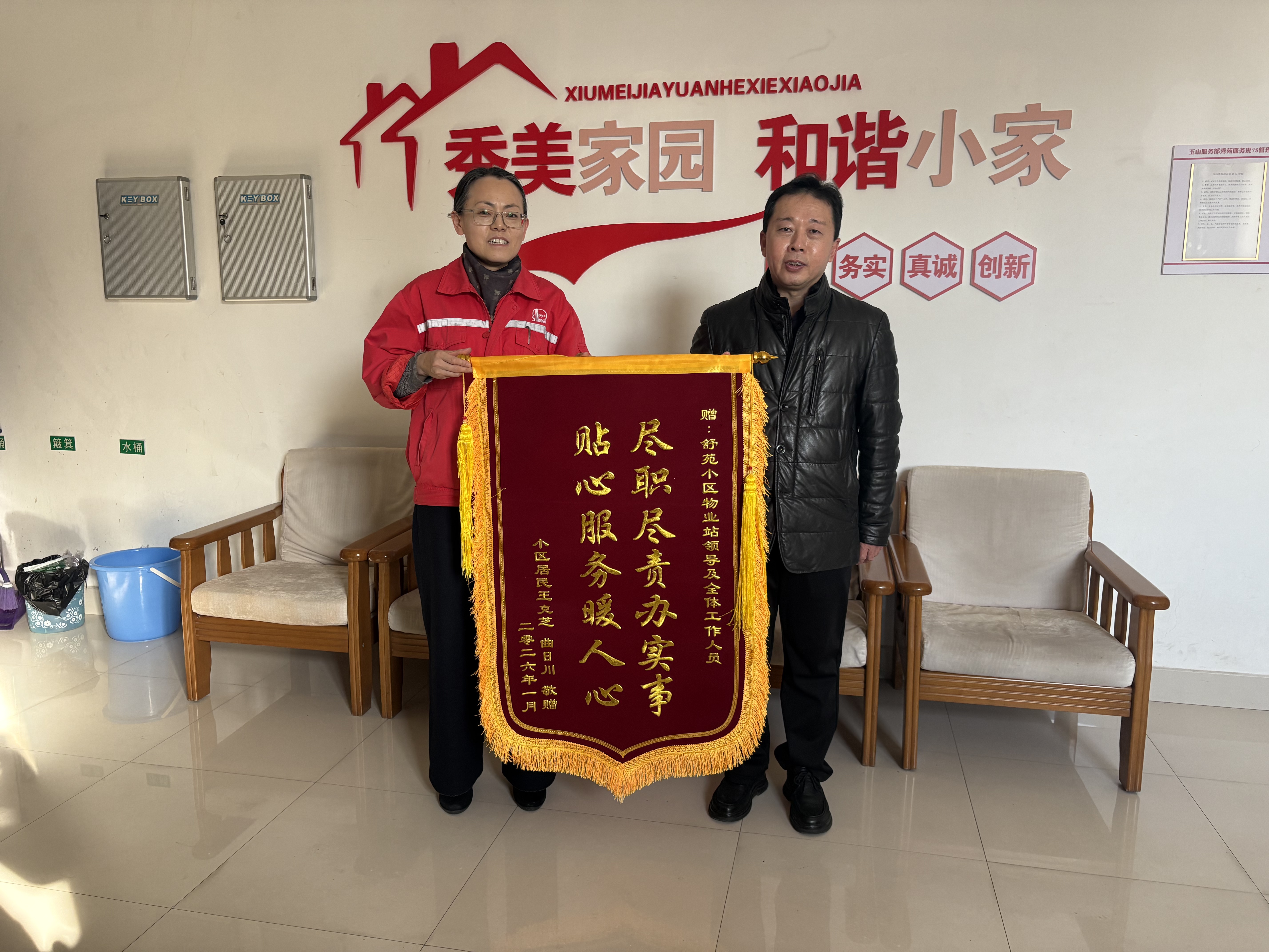 赠送锦旗的居民表示:“我们家里老人一提出建议,物业马上就动起来了,没有拖延,处理得非常迅速。这种把住户小事当成自己大事来办的态度,让我们觉得特别温暖、特别踏实。”