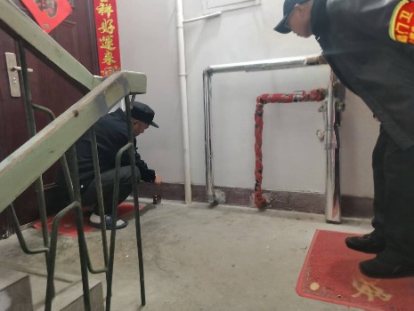 “老师傅,请快停下!这在楼道里太危险了。”门岗员立即上前,一边温和而坚定地劝阻,一边快速观察周围环境。他向老师傅耐心说明,楼道是重要的公共消防通道,在此处使用明火存在严重安全隐患,尤其在天干物燥的冬季,春节也即将临近、万家安宁的时刻,安全决不能大意。