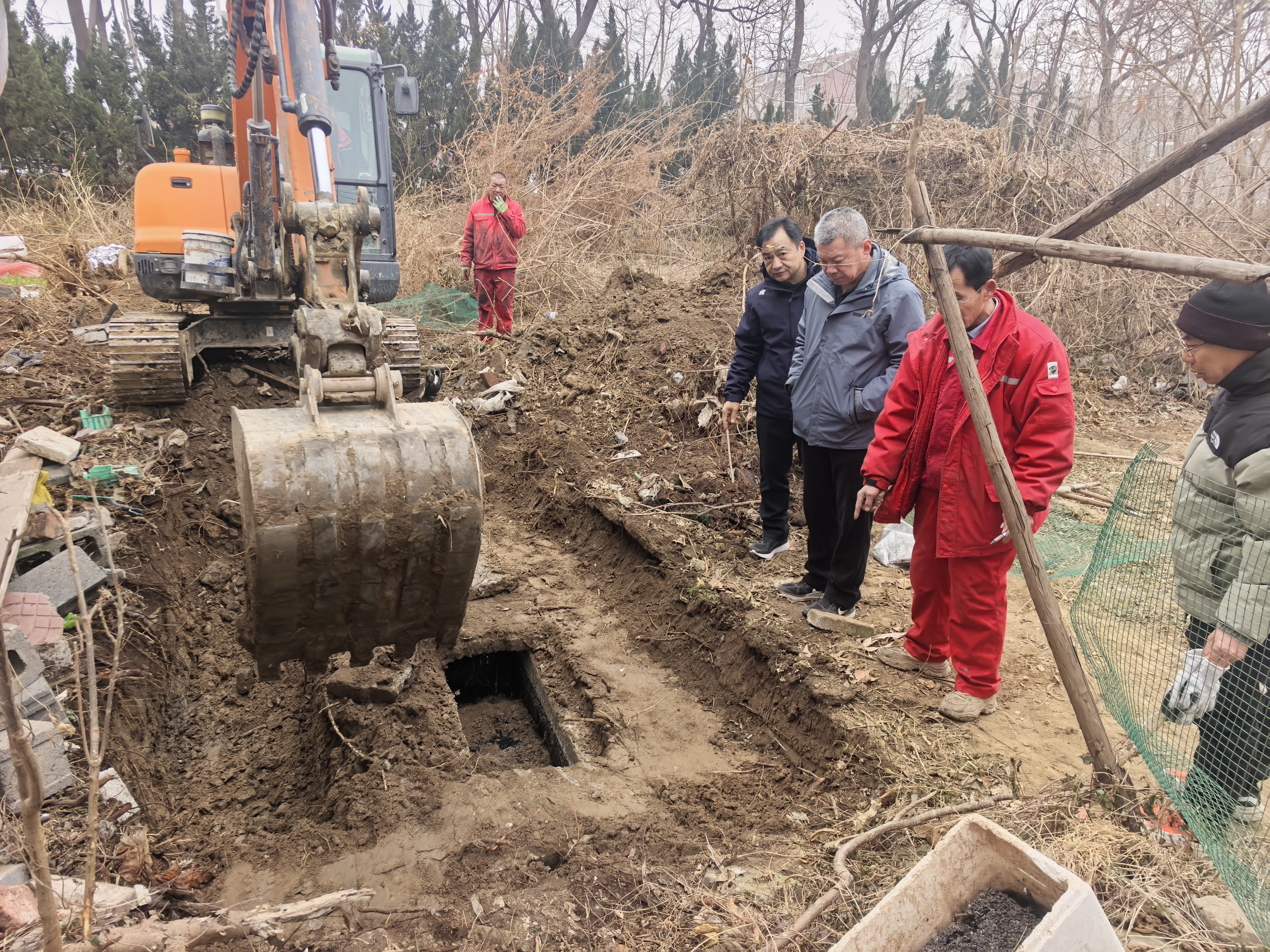 面对这一“顽固老妖怪”,现场坐镇的经理罗天学在请示上级部门后当即拍板:“必须彻底根治!”施工队伍迅速制定方案,整个过程有条不紊。方案既定,行动迅速铺开:移除老旧陶土管——清理坍塌渣土——铺设全新管道——重新砌筑三口污水井——彻底清理两个化粪池;从源头保障畅通,确保日后检修便利。