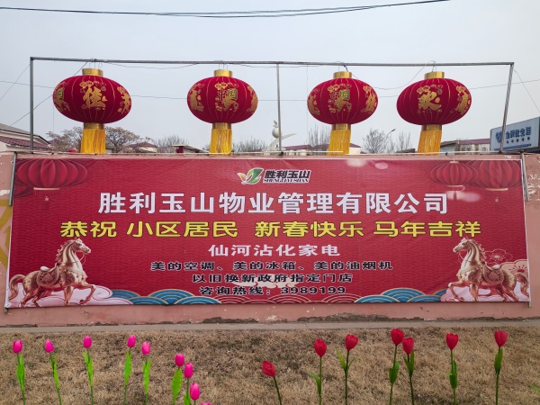 幸福事业部对各小区主出入口及主干道进行节日装扮。大门处换上巨幅新春喷绘,“马年大吉”字样与吉祥图案相映成趣;主干道两侧悬挂起大红灯笼,夜幕降临时灯光齐亮,处处洋溢着喜庆气息。