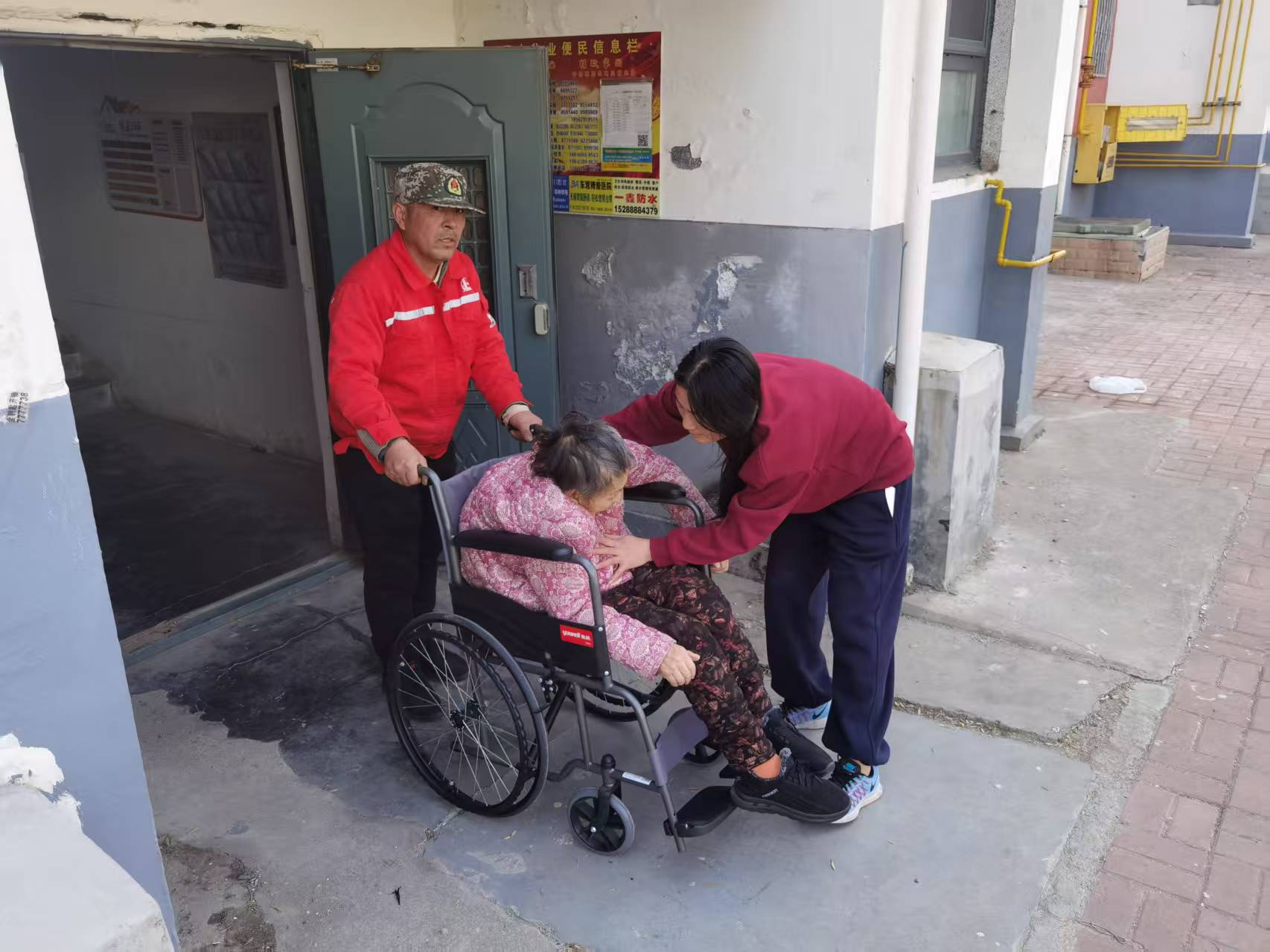 居住在清苑小区38号楼二单元的刘奶奶是一位失能老人,常年使用轮椅进出,她的女儿经常为老人出行做检查而发愁。“嗯,那个……下楼的事,怎么办?”面对又一次必须外出,刘奶奶的女儿王女士看着楼梯发了愁。自己一个人,根本没法安全地把母亲抬下去。