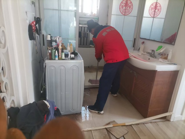 经了解,该业主家中暖气发生爆管,专业维修人员已第一时间完成管线抢修,但室内因漏水导致地板被浸泡,现场积水、杂物较多,业主清理难度较大。见此情况,吕建伟、张炳安主动伸出援手,立即协助业主拆卸泡水地板、快速排水、清理现场,全力帮助业主减少损失、恢复家中整洁。整个过程中,两位工作人员耐心细致、不辞辛劳,用实际行动践行服务初心,获得业主的高度认可与感谢。