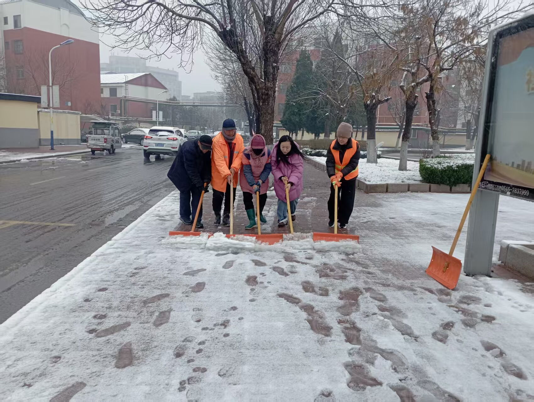 玉山事业部分管生产副经理赵玉伟第一时间组织召开线上应急调度会,统筹调配铁锹、除雪铲、大扫把等物资,各项目人员全部到岗,清扫范围覆盖小区各楼道门口、居民出行道路以及小区主干通道和小区大门附近等交通要道。雪未停,人已至,上班高峰期前,各小区已清扫出居民通行“安全带”,有居民走过清扫完成的道路时,对还在辛苦清扫的物业人纷纷竖起了大拇指,夸赞物业是小区的“定心丸”,项目负责人也在各居民群内发送温馨提示,提醒居民雪天出行注意事项等,彰显了玉山事业部“事无巨细,用心服务”的工作理念。