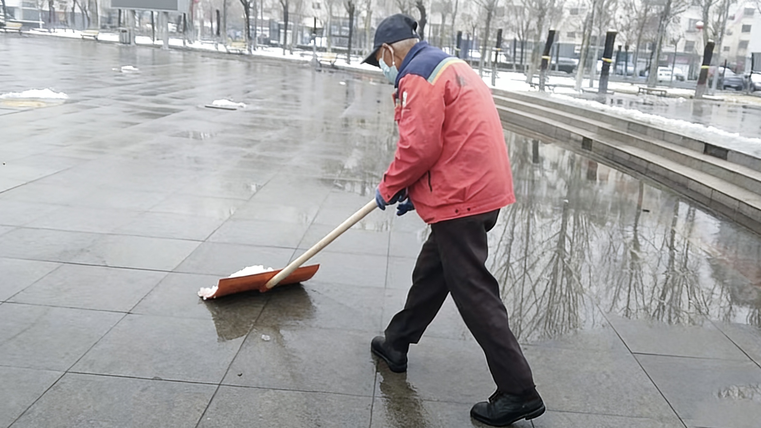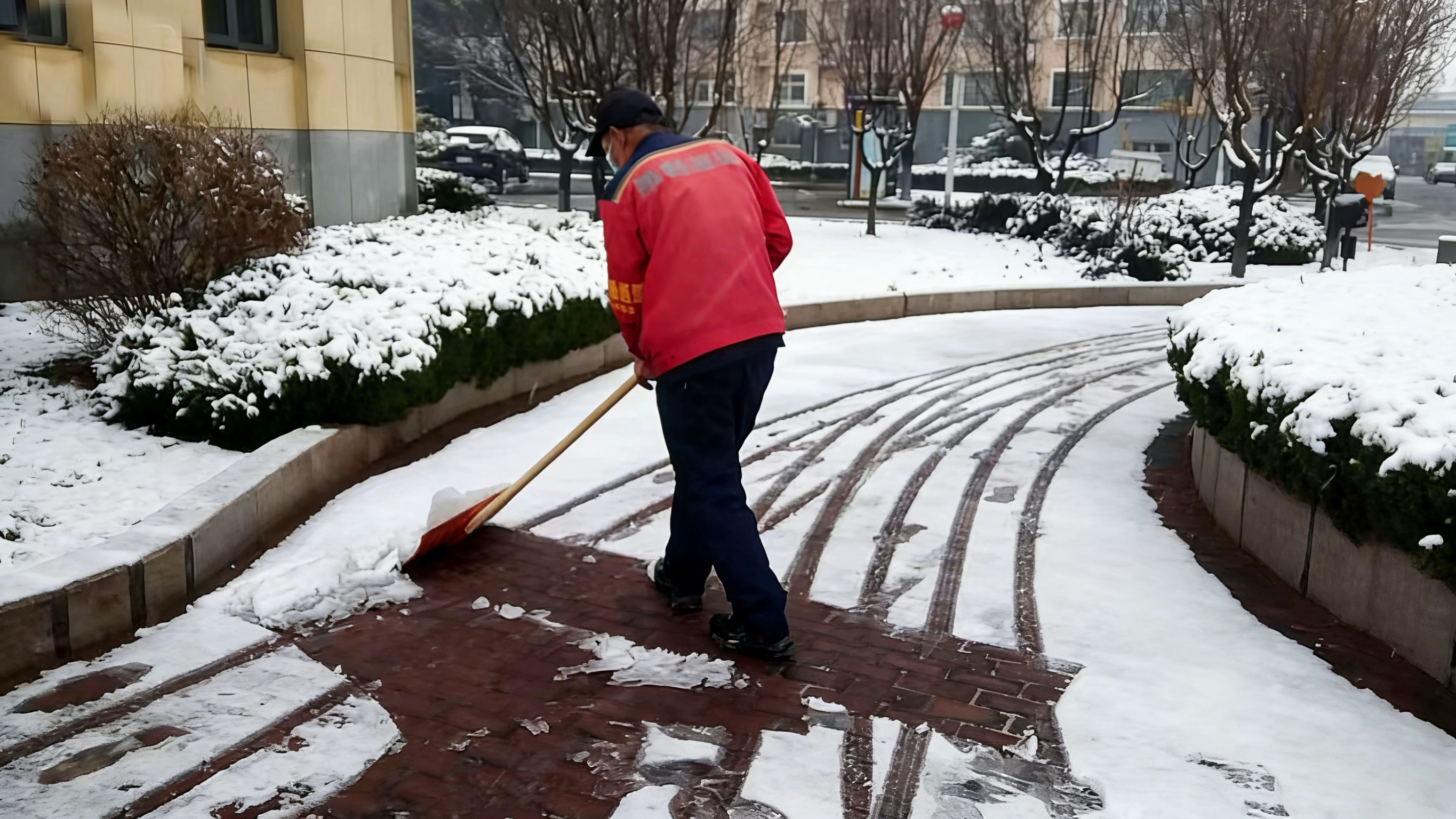 天刚蒙蒙亮,胜兴事业部的员工便已全员到岗,手持铁锹、扫帚、雪推板等工具,奔赴小区各个角落。无论是主干道,还是单元门口、人行步道,都能看到大家忙碌的身影。寒风裹挟着雪花打在脸上,刺骨的寒意丝毫没有阻挡大家的工作热情,大家分工明确、配合默契,有的弯腰清扫积雪,有的奋力铲除薄冰,这些忙碌的身影,构成了雪后小区里最动人的风景线。