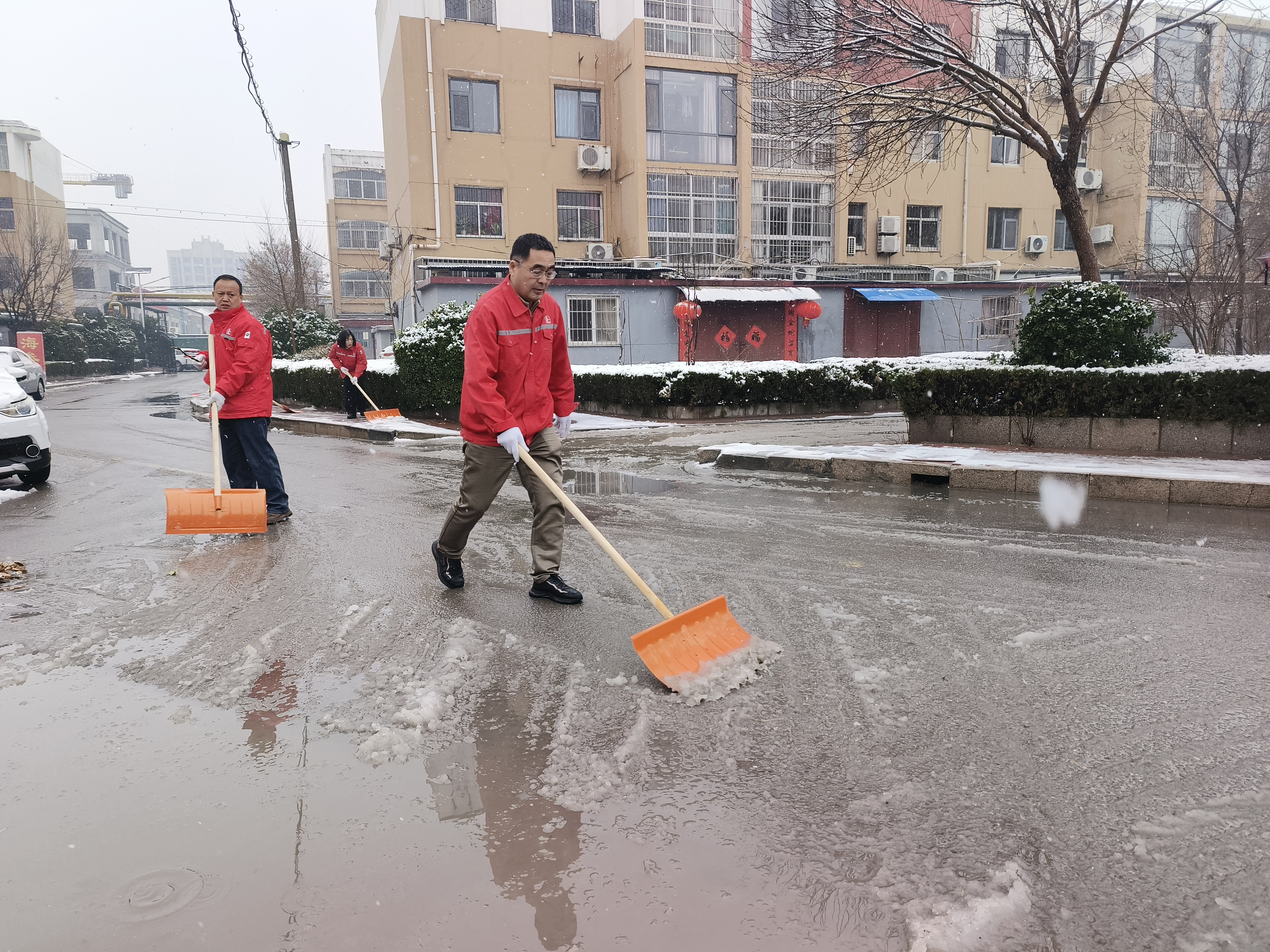 辛兴事业部其他各项目员工也根据所服务小区积雪情况对小区内的积雪进行了清扫。