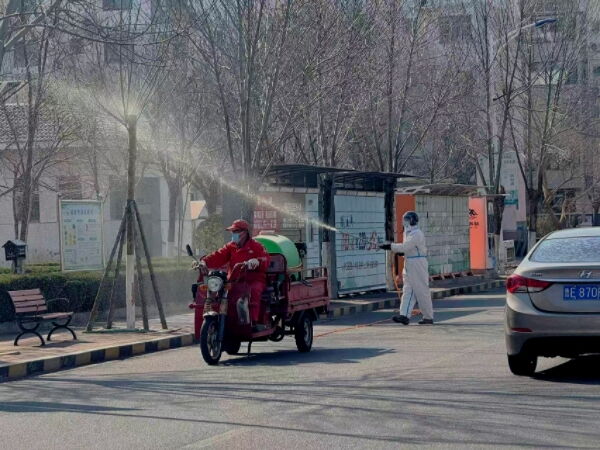 此次专项防护以预防蛀干害虫为核心目标,事业部严格遵循科学养护规范,选用石硫合剂开展精准防治,有效杀灭树皮缝隙内的虫卵、病菌,从源头抑制蛀干害虫繁殖。为确保防治成效,项目部制定标准化作业方案,要求工作人员间隔10天,对小区所有行道树连续喷洒2遍药剂。作业前,工作人员提前通过业主群、公告栏发布温馨提示,提醒居民看护好老人、小孩及宠物,关好门窗,避免靠近喷洒区域。作业过程中,工作人员严格按照药剂配比规范操作,采用高压喷雾设备,对树干、枝干等重点部位进行全方位、无死角喷洒,确保药液均匀覆盖,切实提升防护效果。