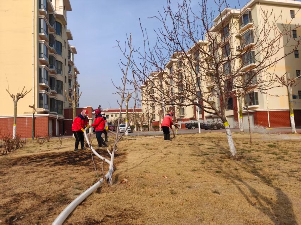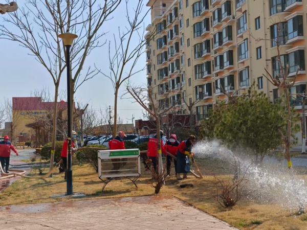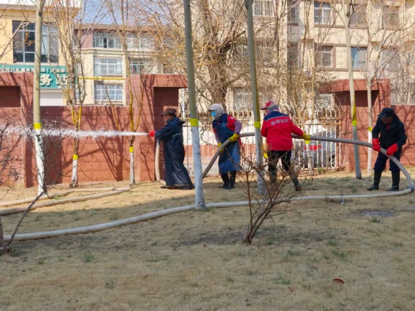 随着天气变暖,绿植由休眠期进入萌发生长期,逐渐“苏醒”。为确保绿植能够顺利返青,幸福事业部进行返青水灌溉,通过春灌能有效增加地温,保护植物根部,增强萌芽能力,对绿植的存活、生长有着至关重要的作用。