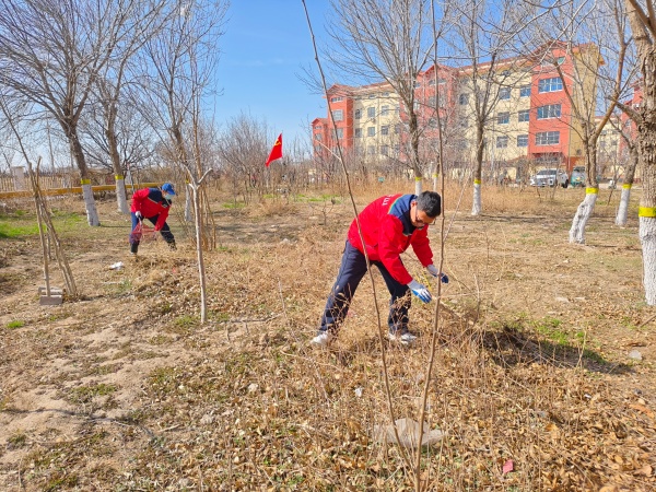 当日下午,机关团队与小区工作人员集合到文明二小区18号楼南侧。此处紧邻垃圾临时堆放点,周围小树林内存在落叶积存、蒿草疯长,加之部分居民存在乱种植现象,导致围墙边角杂乱,不仅影响环境美观,也给小区管理带来难题。