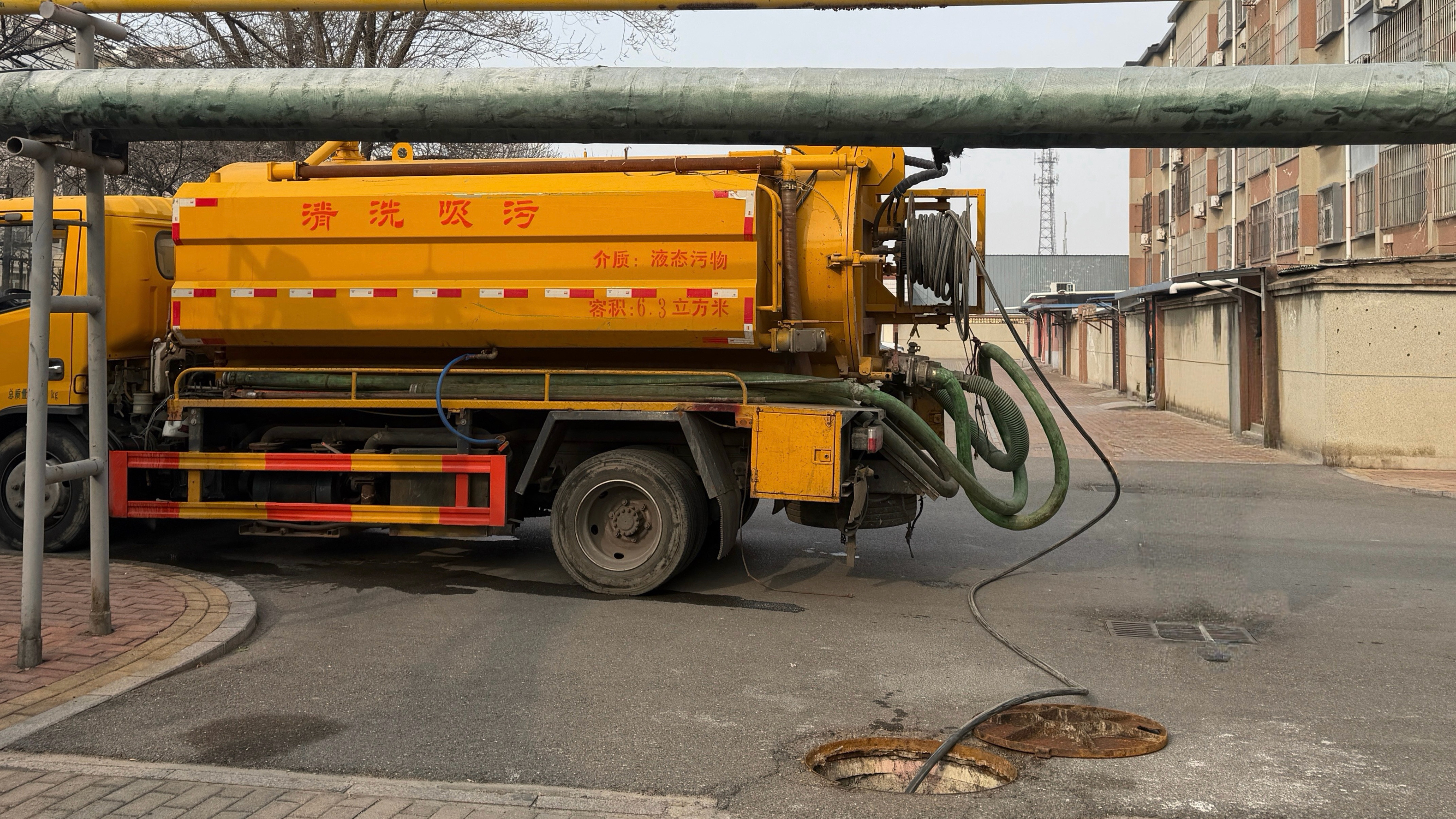 胜兴事业部维修人员到场后迅速排查,精准判断此次堵塞并非简单杂物堆积,而是管道内长期积累的油污凝固结块所致,常规疏通工具难以从根源上解决问题。为尽快恢复居民正常生活,决定调度专业清污车支援,以高效处置化解居民难题。