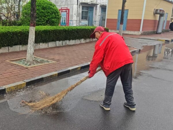 为切实保障居民安全顺畅出行,锦华事业部迅速响应,一大早便组织职工奔赴小区各积水路段,开展积水清扫专项工作。工作人员们手持扫帚分工协作、默契配合。有的负责将积水向排水口集中推扫,有的仔细清理排水口周边的落叶、杂物,确保排水通畅,避免积水二次淤积。大家干劲十足,不放过任何一处积水死角,全力加快清扫进度。