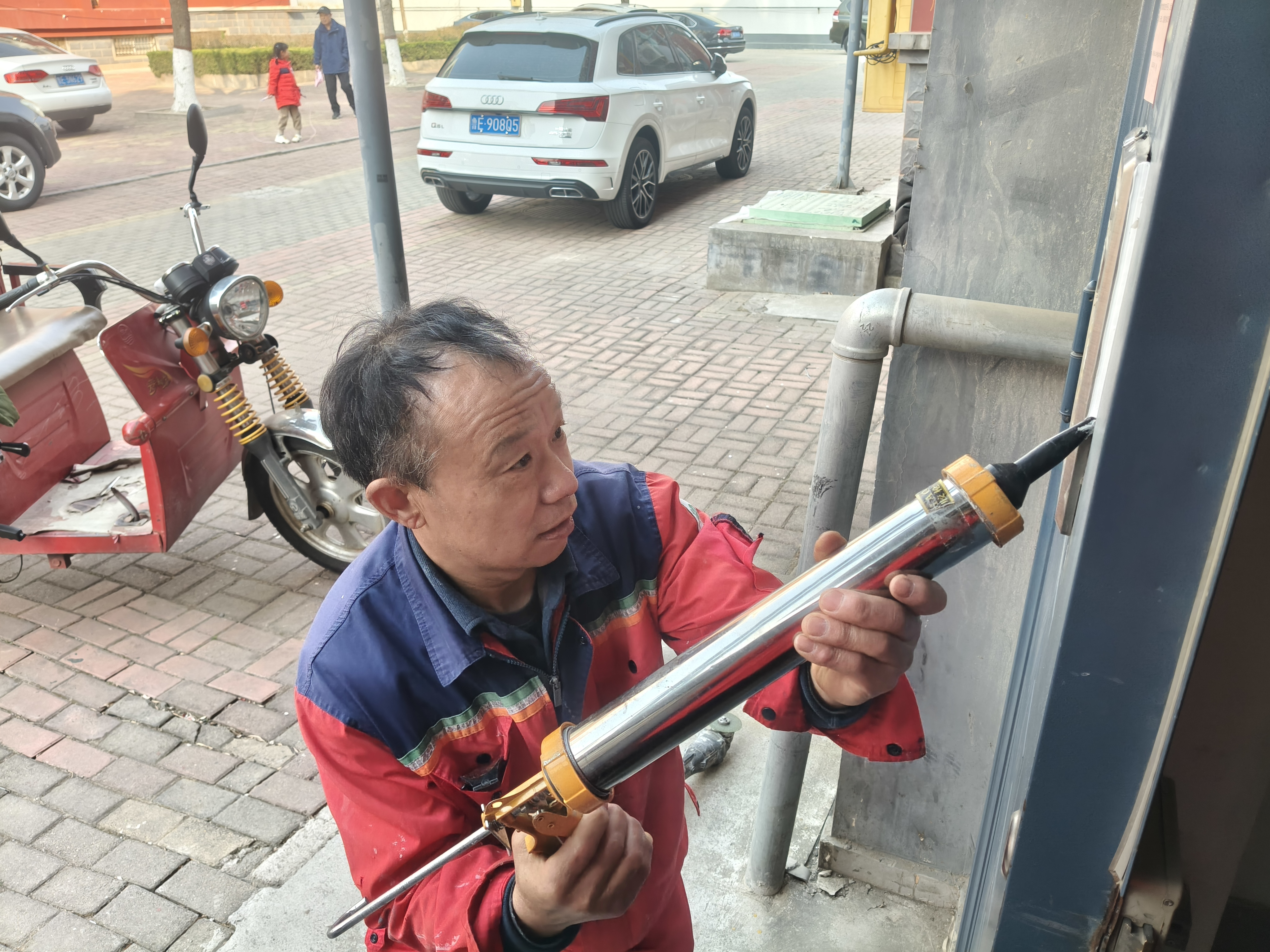 在维修现场,维修人员分工协作、配合默契。他们手持胶枪,仔细为单元门缝隙填充密封胶,动作精准细致,确保每一处缝隙都填充饱满、牢固密封,有效解决漏风渗水问题。对照单元门面板,随晓勇与李长江沟通调试门禁系统,逐一检查锁具、合页等关键部件,拧紧松动螺丝,为老化部件涂抹润滑油,让开关门变得顺畅无阻。从前期的全面排查,再到精准维修,和后期的调试验收,每一个环节都一丝不苟,力求将细节做到极致。