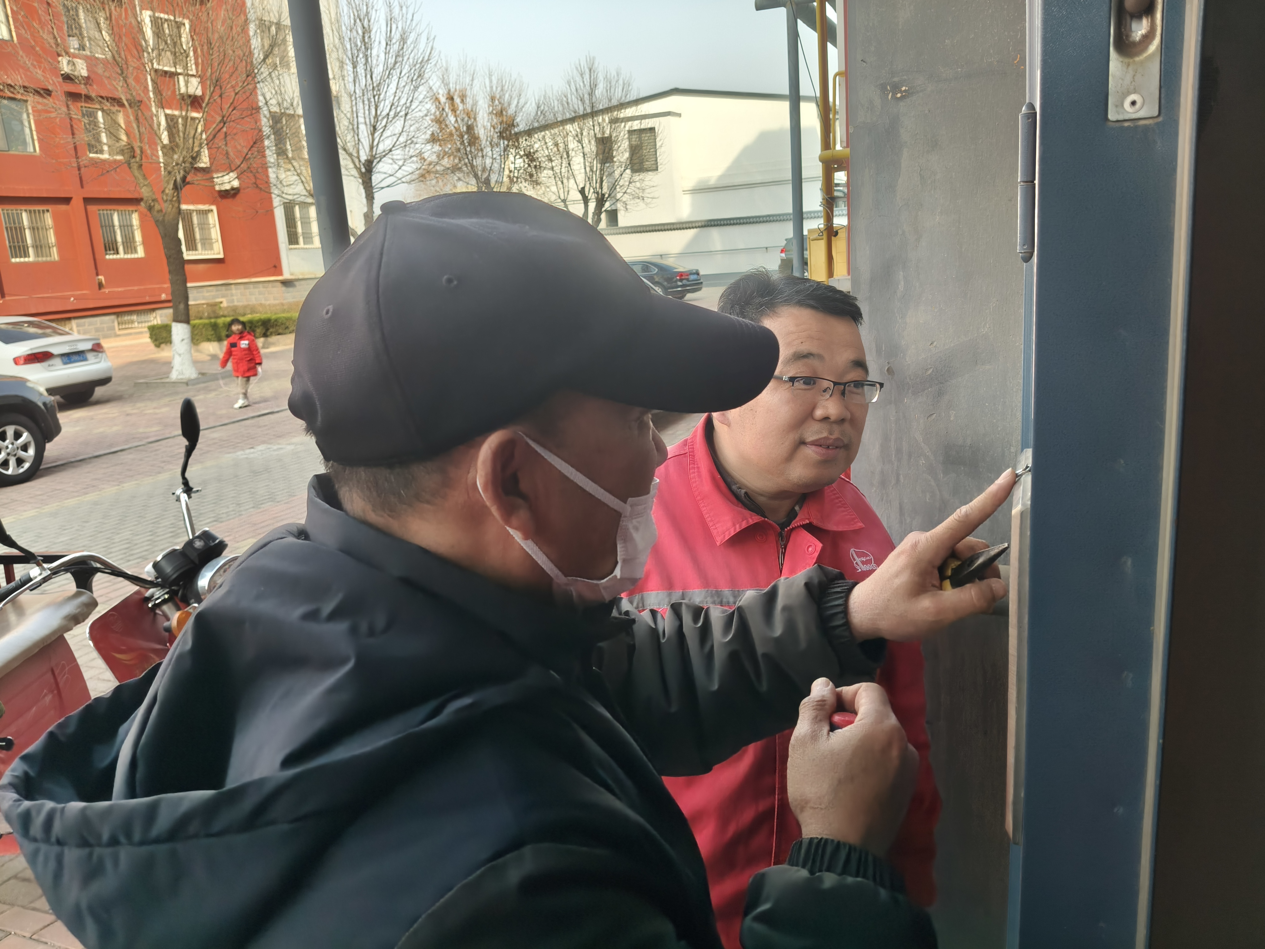 此前,小区部分单元门因长期使用,出现了密封胶老化脱落、合页松动、开关卡顿等问题。不仅影响小区整体环境美观,更带来了安全隐患。漏风的门缝让寒风直灌楼道,松动的部件易造成门体故障,而敞开的单元门也让外来人员随意进出,给居民的财产和人身安全埋下隐患。了解到这一情况后,景苑事业部安泰项目高度重视,迅速组织维修人员开展专项排查,制定了“逐门检修、精准修复”的实施方案。