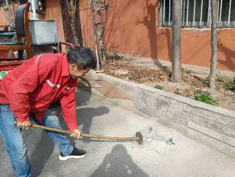 运达小区内老年居民较多,他们视力不佳、行动迟缓,极易被凸起的底座绊倒摔伤,看似微小的隐患,却时刻威胁着老年人的出行安全。运达项目立即组织工作人员对废弃灯杆底座拆除。在拆除过程中,物业工作人员手持大锤反复敲击,伴随着清脆的敲击声,顽固的废弃底座被清理干净,随后再用水泥砂浆对周边地面进行找平、修复,既消除安全隐患,又不影响小区整体环境美观。